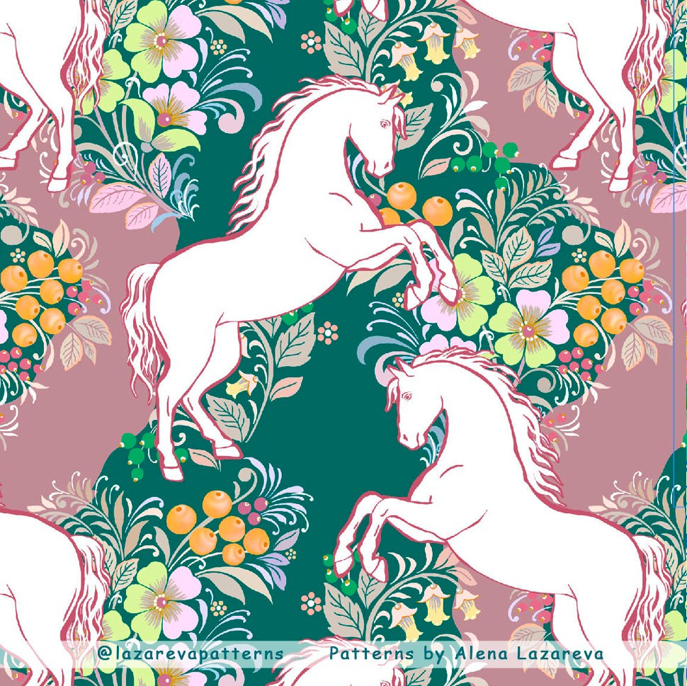 В основном паттерны рисую от руки в цифровом формате. Иногда акварель, карандаши. Высококачественные принты. Формат PSD по слоям, Tiff. 300 DPI.